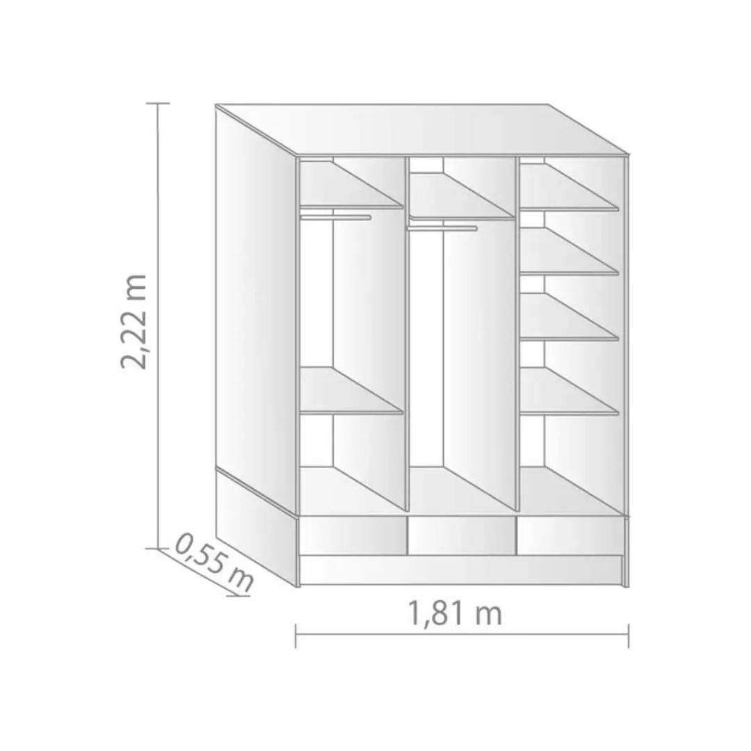 – Dimensiones: Alto 2,22m. | Profundidad 0,55m. | Ancho 1,85m.